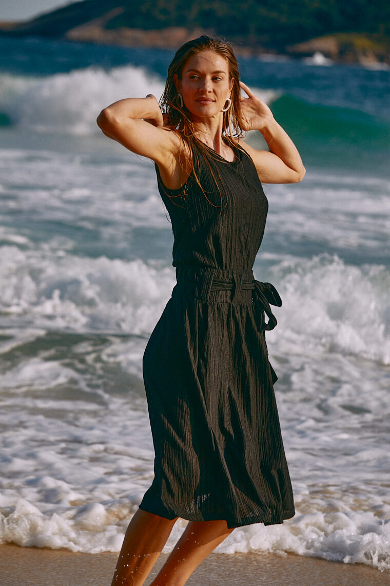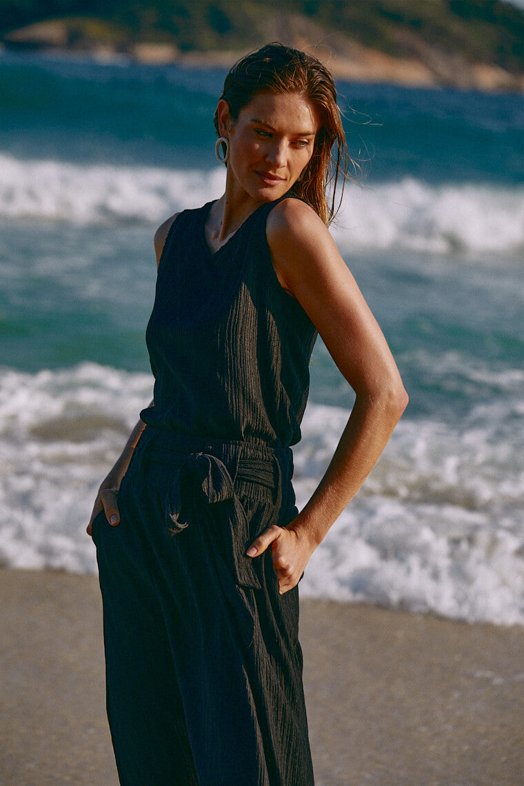 Sua modelagem clean, sem mangas, traz um visual moderno e atemporal, ideal para composições versáteis que transitam do casual ao refinado. O acabamento sutil e o tecido com leve movimento fazem da Blusa Redentor uma peça essencial para o dia a dia, viagens ou produções mais elegantes quando combinada com acessórios.
