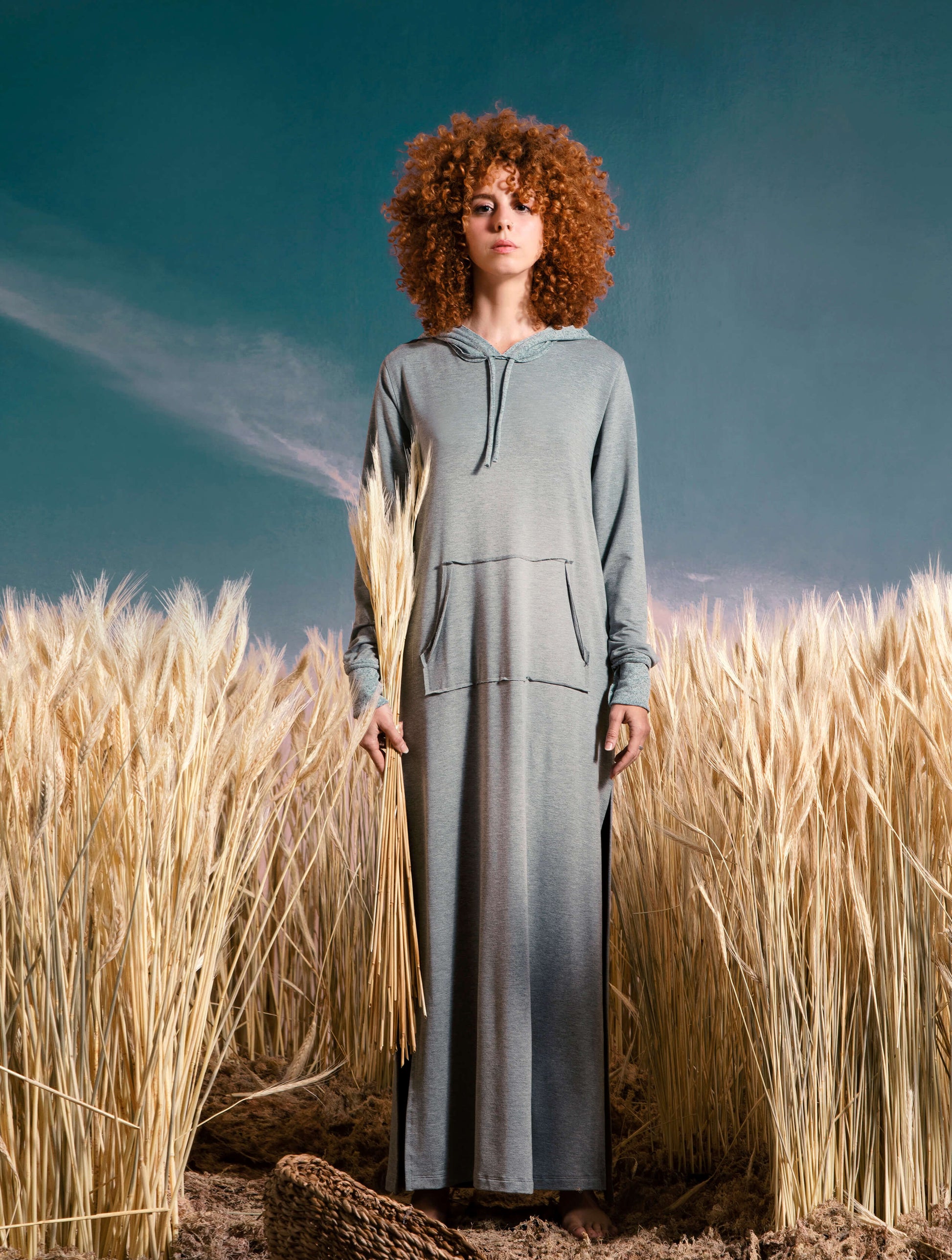 O capuz adiciona charme e funcionalidade, enquanto o comprimento midi com fendas laterais garante liberdade de movimento e um visual moderno. Os bolsos frontais trazem praticidade ao design, tornando a peça ainda mais versátil e confortável.