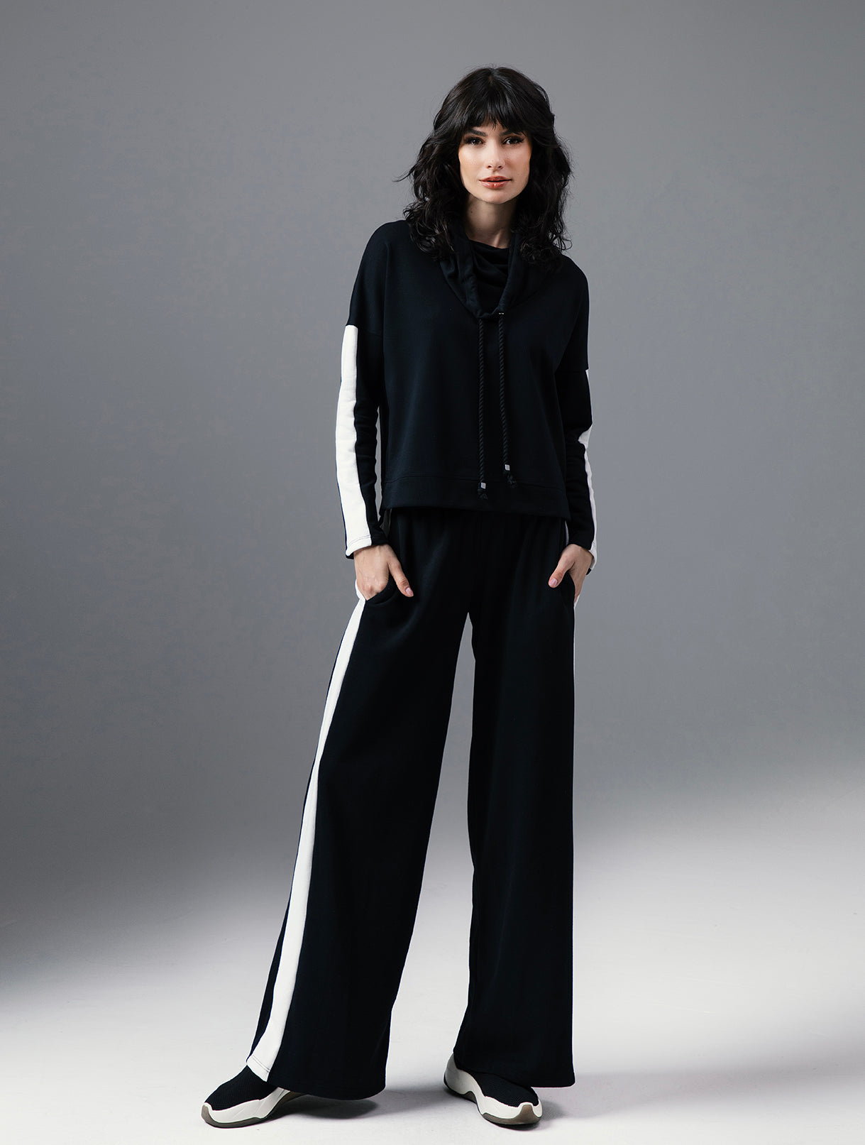 O Conjunto Erica é a combinação perfeita de conforto e estilo. Confeccionado em moletom macio, ele oferece um toque aconchegante e um caimento impecável. O design bicolor traz um ar moderno e sofisticado, destacando a elegância da peça. A blusa com gola adiciona um charme clássico, enquanto a calça pantalona proporciona fluidez e conforto, valorizando a silhueta. Versátil e estiloso, o Conjunto Erica é ideal para compor looks casuais com um toque refinado.