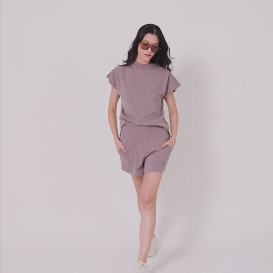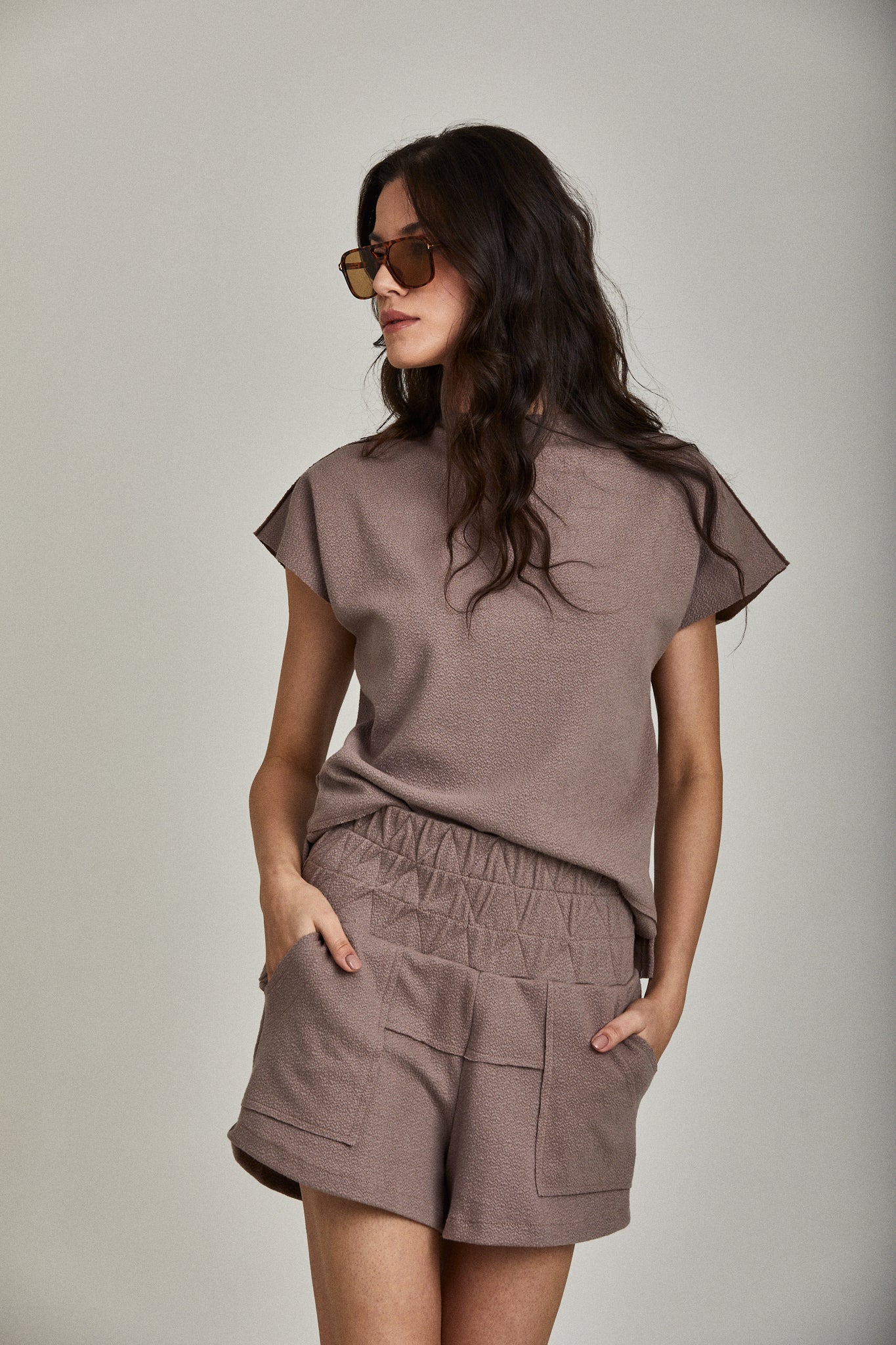 Conforto com charme extra! Nosso conjunto em malha traz praticidade e estilo para os seus dias com blusa básica de manga curta e shorts com cós zigzag supermoderno e bolsos funcionais. Os detalhes em nervura adicionam textura e sofisticação à peça, tornando o visual perfeito para quem busca leveza e personalidade no visual do dia a dia.