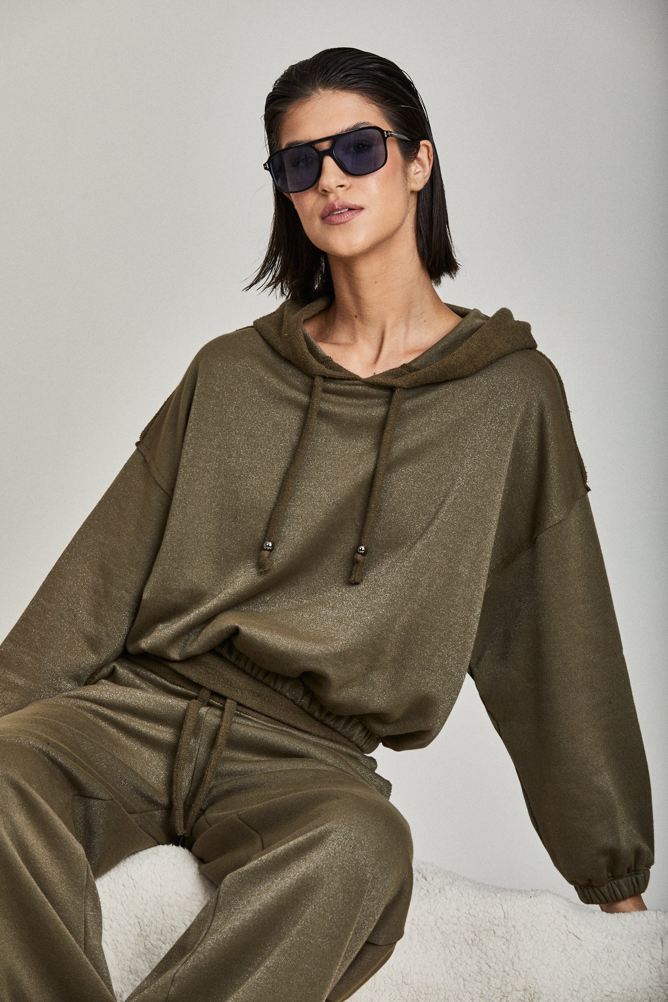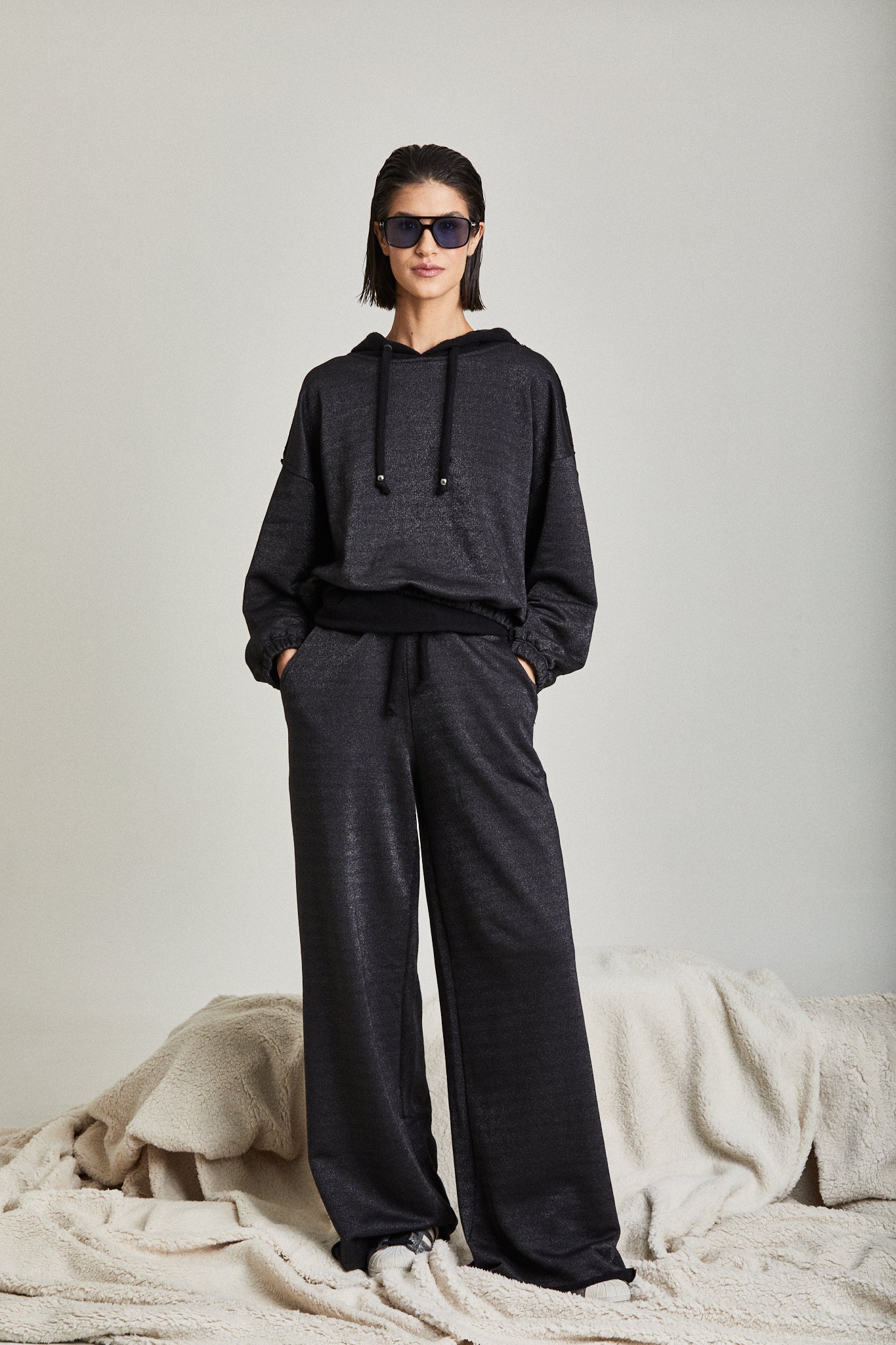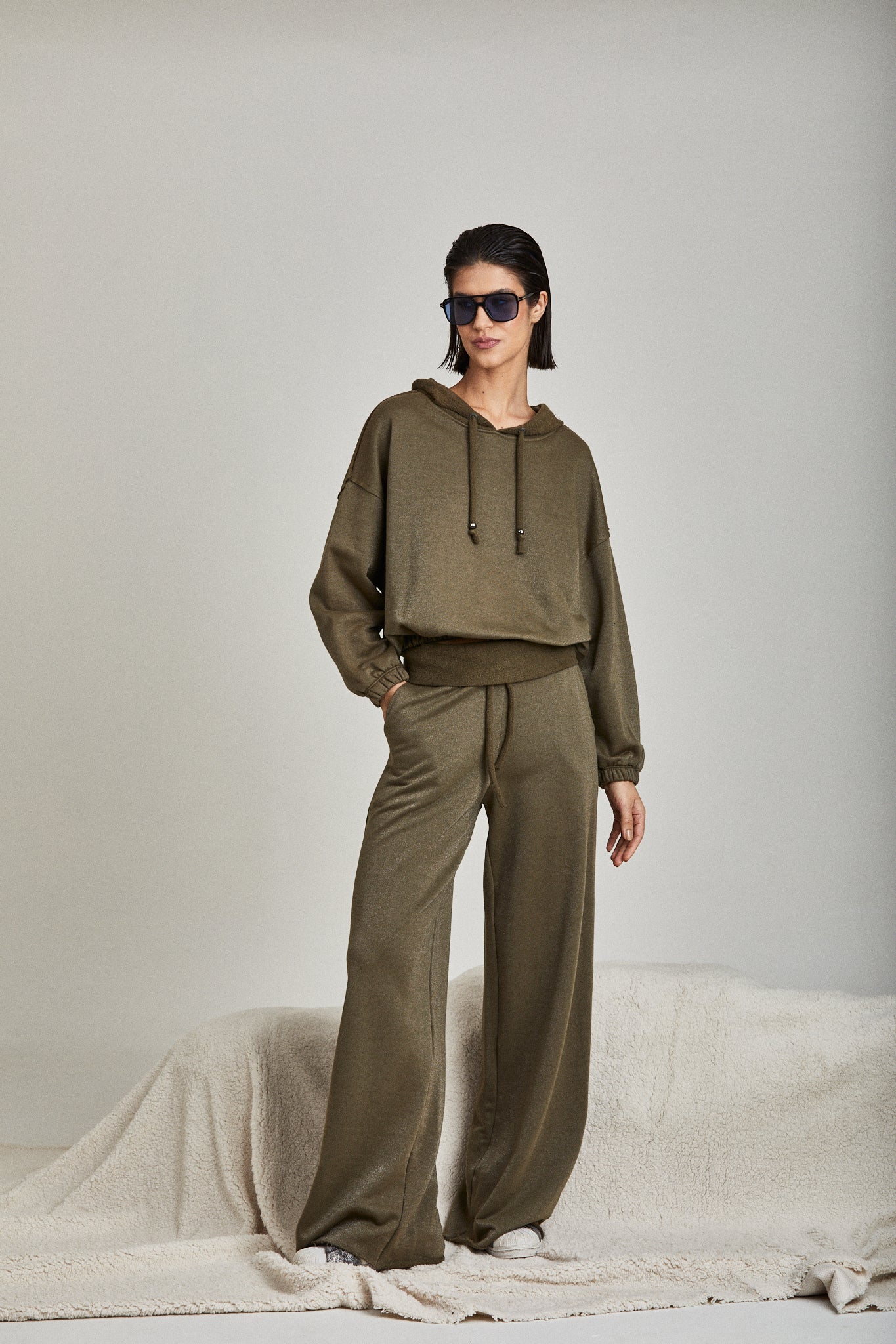 Com um design pensado para te acompanhar em qualquer momento do dia, este conjunto em moletom macio e estruturado é aquele tipo de peça que você veste uma vez e não quer mais tirar. A blusa com capuz e elástico na barra tem um caimento despojado e atual, valorizando a silhueta com um toque urbano e descontraído. Já a calça pantalona com cordão ajustável traz fluidez e elegância, sem abrir mão do conforto. Ideal para quem quer estar bem-vestida em casa, no café com as amigas ou em um look casual cheio de atitude. Um conjunto versátil, estiloso e extremamente confortável — daqueles que viram queridinho no guarda-roupa.
