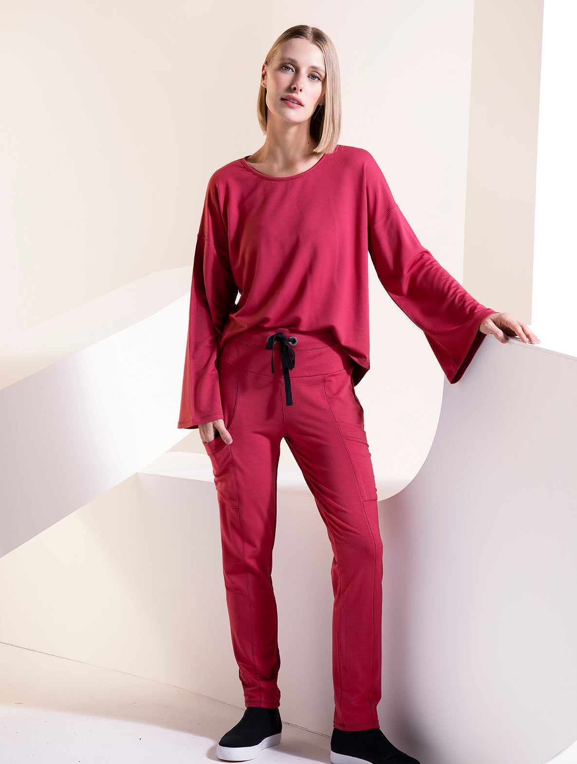O Conjunto Vera é a união perfeita entre conforto e sofisticação. A blusa possui um design elegante, destacando-se pelas mangas boca de sino, que adicionam um toque moderno e fluído ao look. A calça estilo montaria, com caimento ajustado, valoriza a silhueta e traz um ar contemporâneo, enquanto o detalhe em pesponto realça a sofisticação da peça. Feito em moletinho, o conjunto proporciona leveza e maciez, sendo ideal para quem busca estilo e bem-estar no dia a dia.