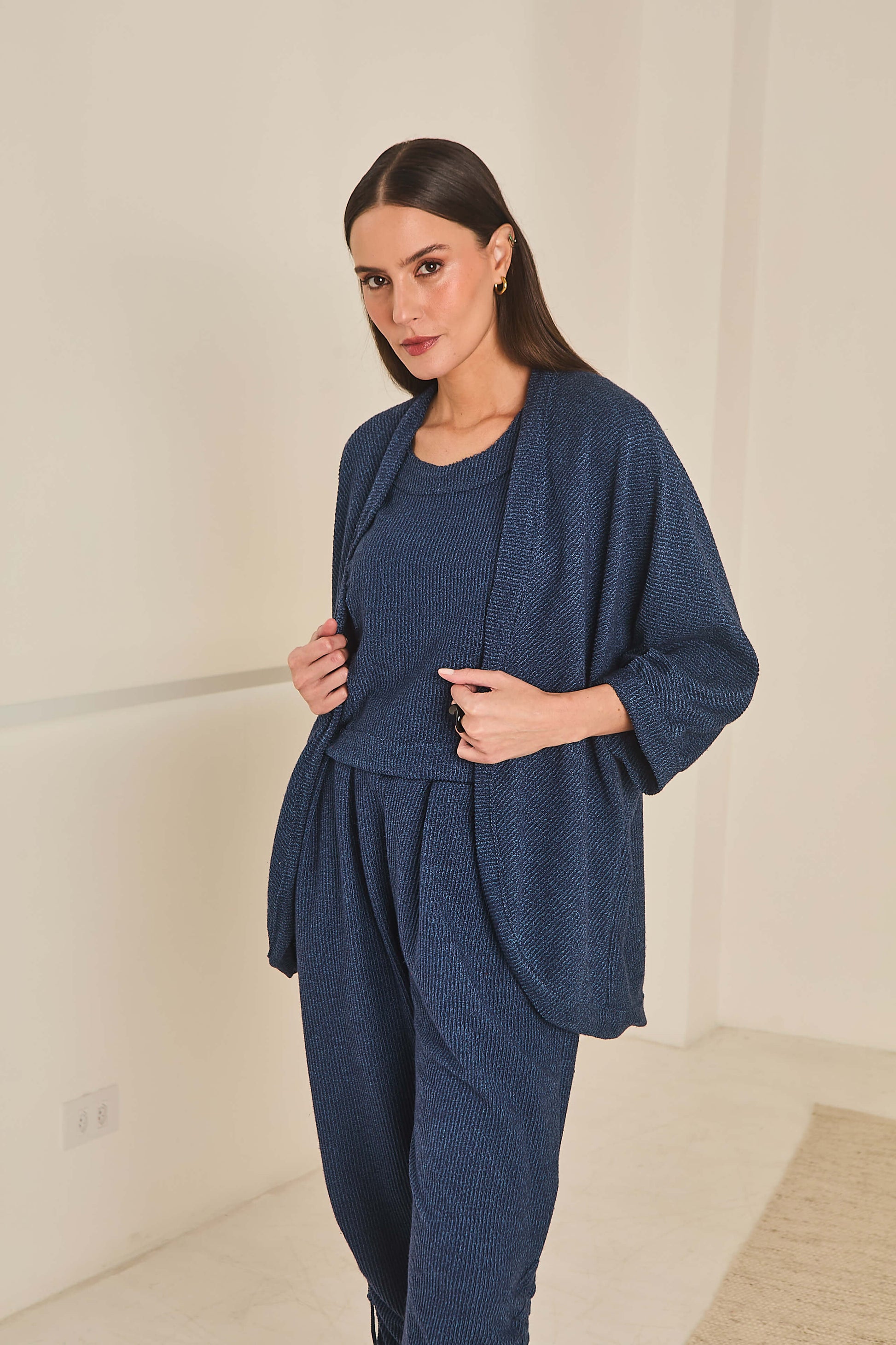 Ideal para combinar com regatas, blusas ou tops da mesma linha, o Quitana traz o equilíbrio ideal entre aconchego e estilo contemporâneo, perfeito para o dia a dia ou momentos de relax com charme.