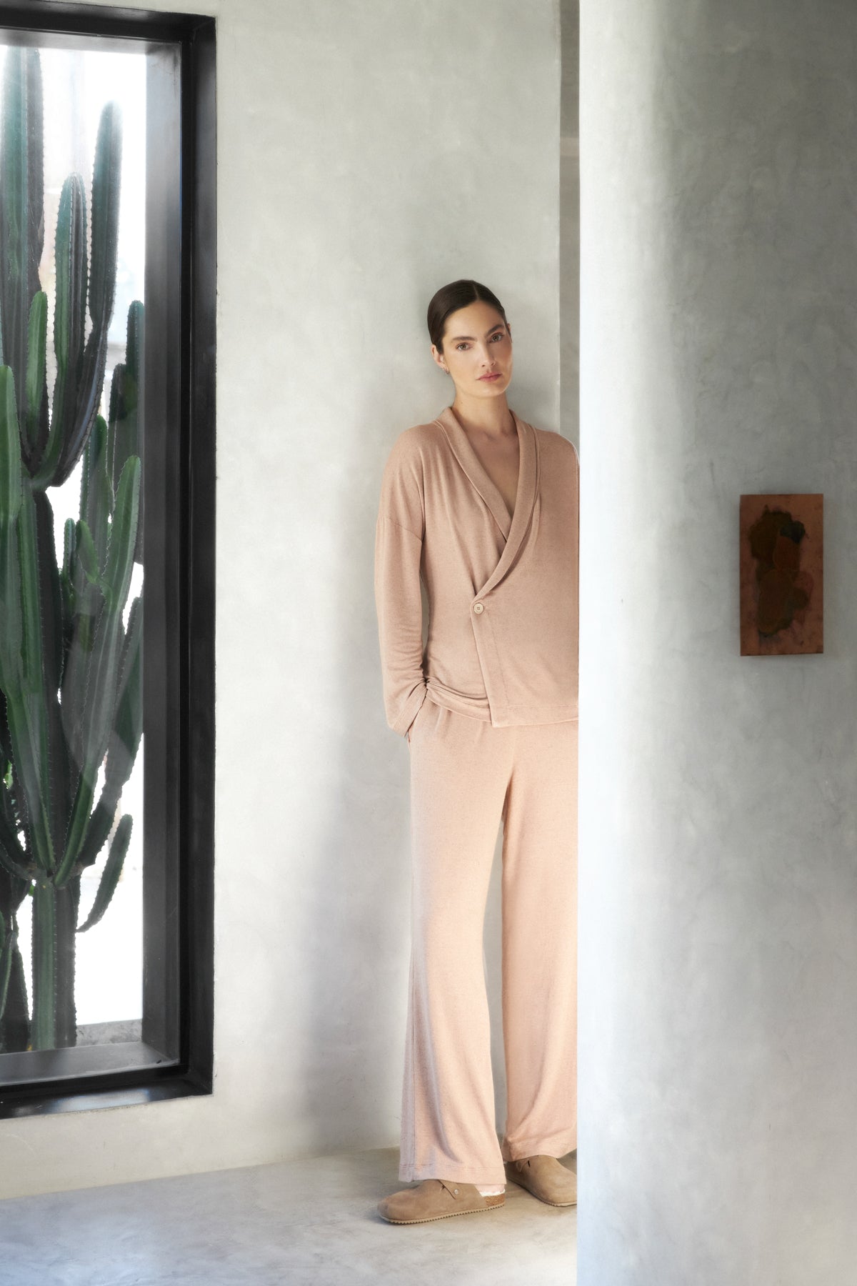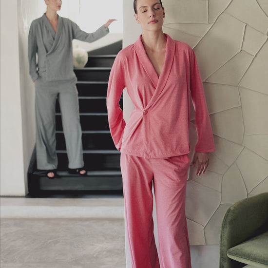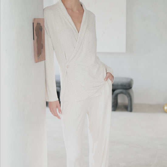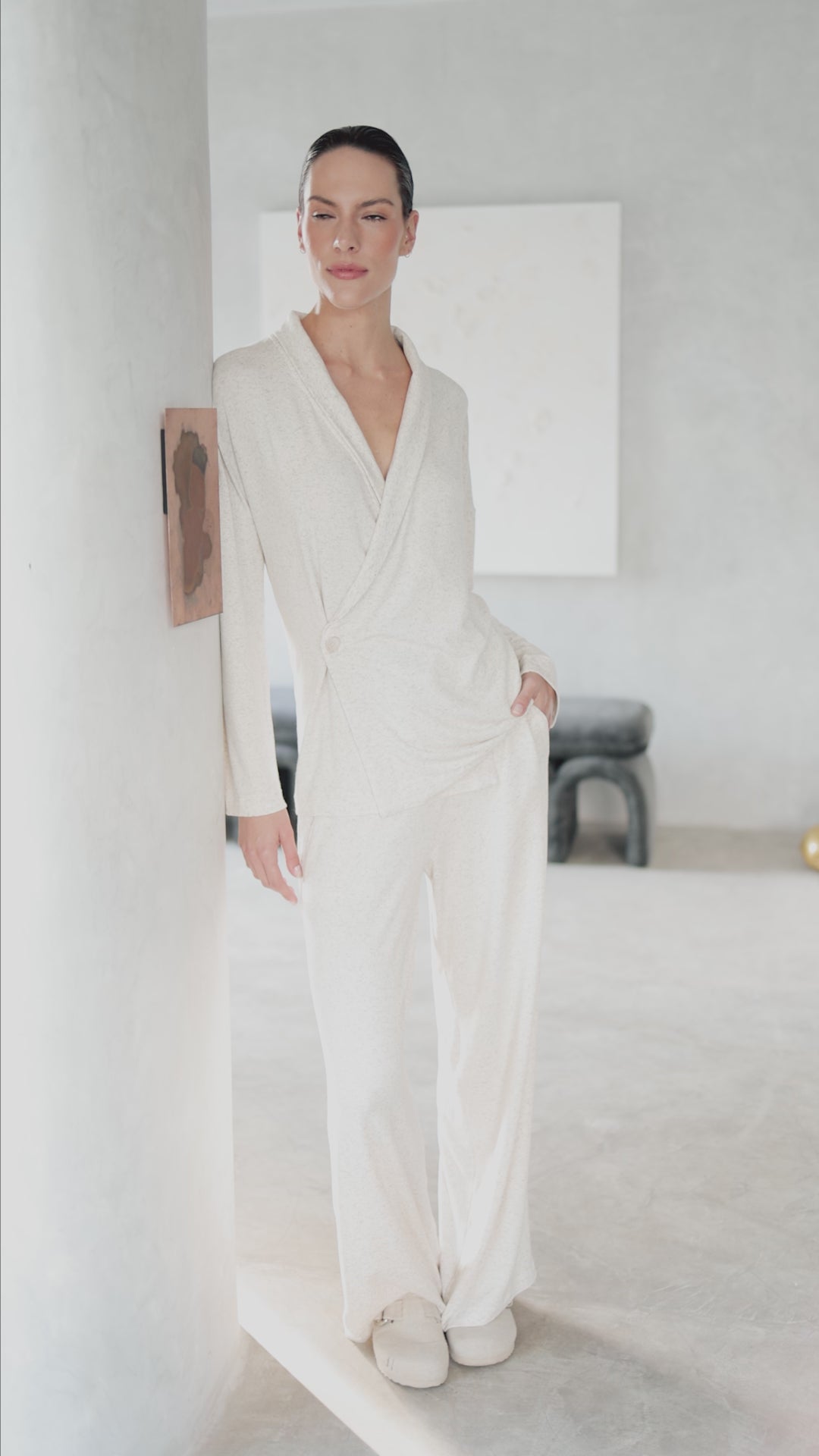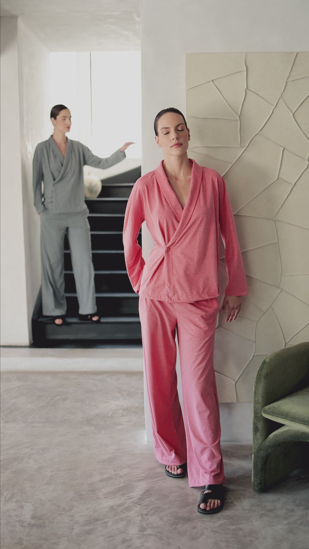 O Pijama Blue é a escolha perfeita para quem busca conforto, estilo e sustentabilidade. Confeccionado em algodão sustentável, ele oferece uma sensação macia e fresca, ideal para noites de descanso com responsabilidade ambiental. O design transpassado com botão proporciona um ajuste delicado e elegante, enquanto a calça completa o conjunto com um caimento confortável e moderno. O Pijama Blue une praticidade e sofisticação, garantindo uma noite de sono tranquila e cheia de estilo.