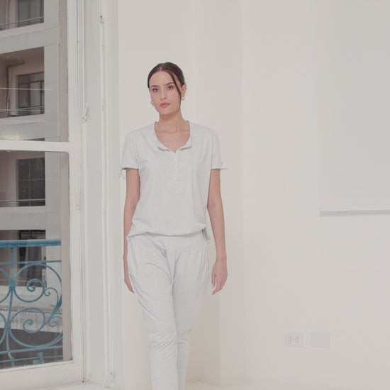 O conjunto tem visual suave e atemporal, perfeito para quem valoriza pijamas confortáveis, funcionais e com detalhes que fazem a diferença. Ideal para dormir, relaxar ou curtir o dia em casa com muito estilo.