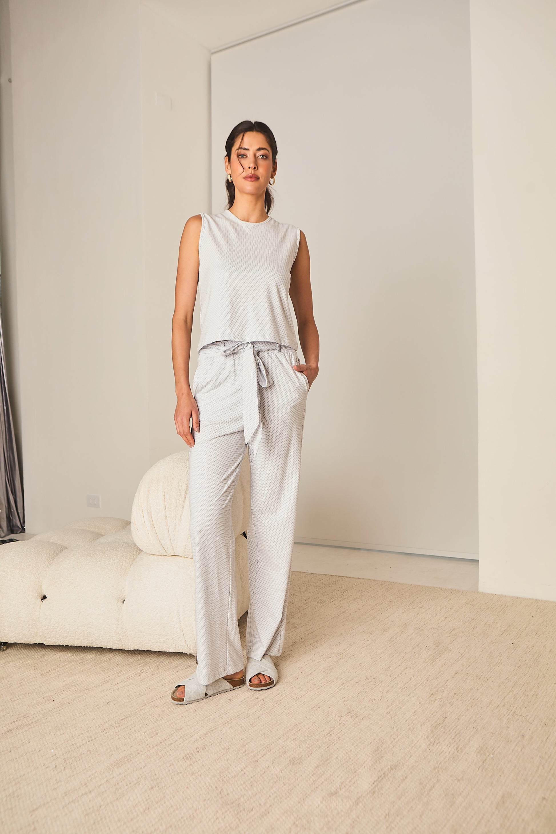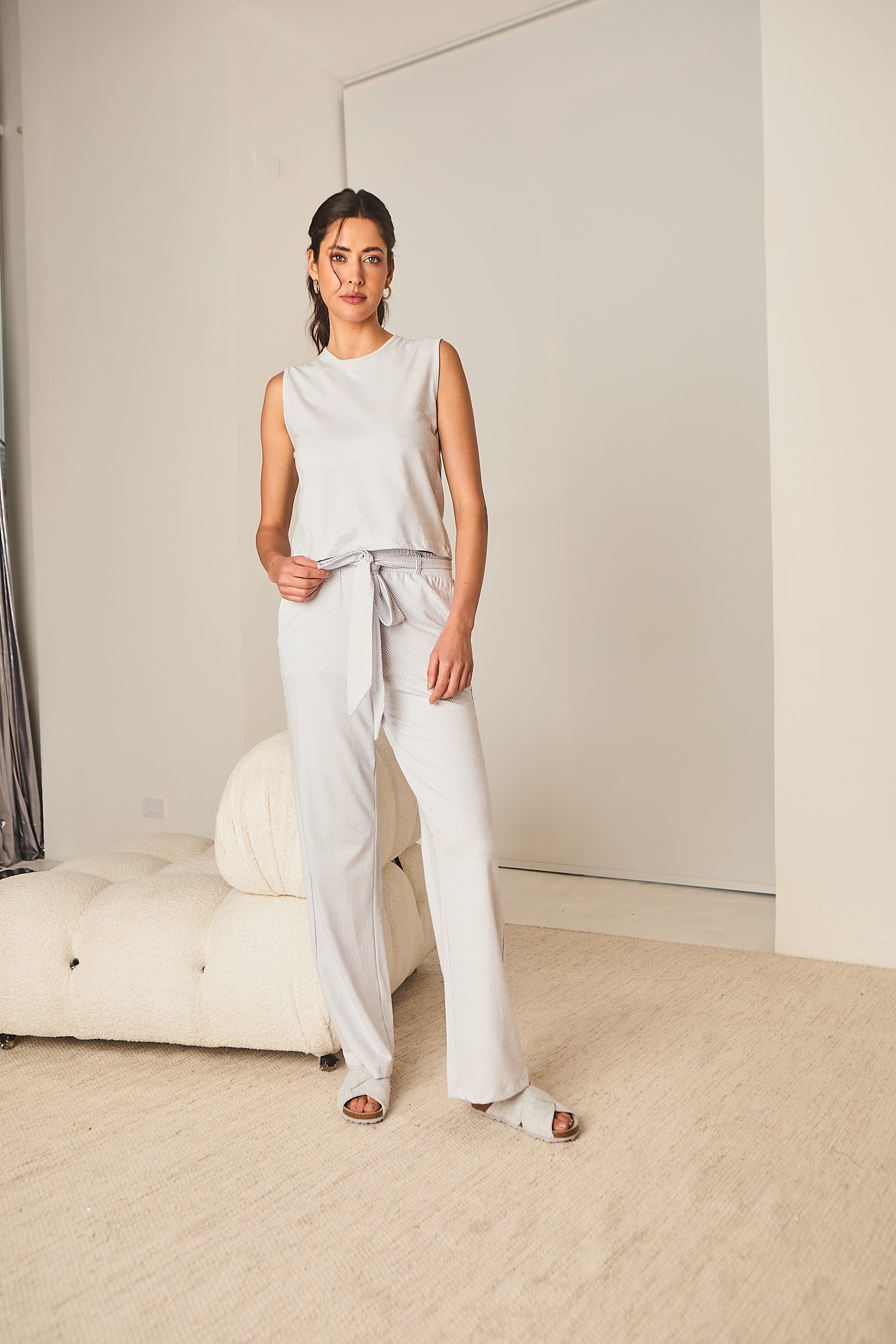 Ideal para quem busca praticidade sem abrir mão da elegância, o Conjunto Hortênsia é perfeito para transitar do home office aos encontros casuais com modernidade e conforto.