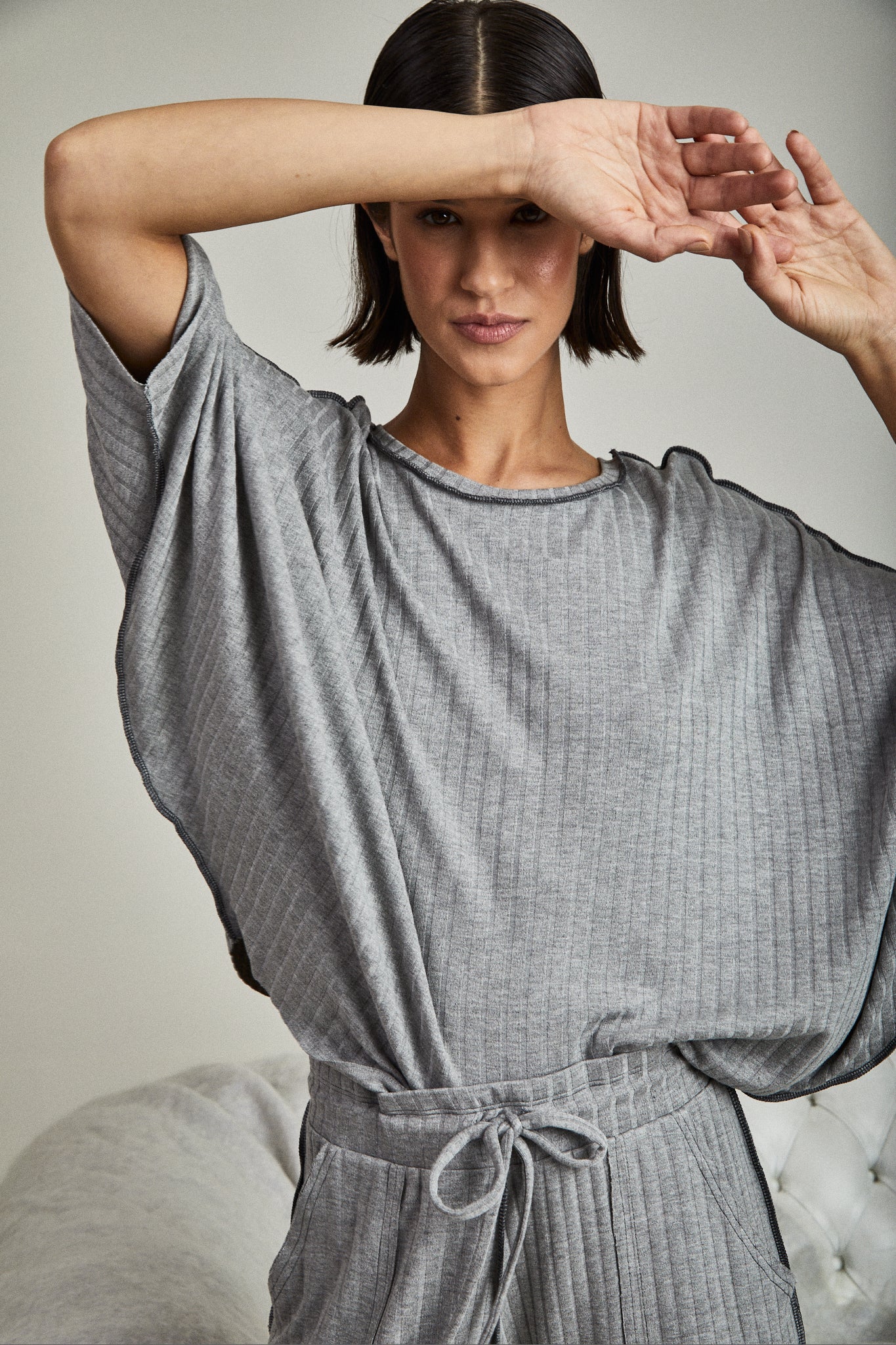 Este pijama em malha canelada é a escolha perfeita para quem valoriza bem-estar com estilo. O blusão soltinho oferece um caimento leve e aconchegante, ideal para os momentos de descanso. A calça estilo pescador traz praticidade e um visual moderno, com comprimento mais curto que combina com todas as estações. O destaque fica por conta dos detalhes em trançador, que adicionam um toque delicado e artesanal à peça. Um conjunto versátil, confortável e cheio de personalidade para suas noites (ou dias) de relax.