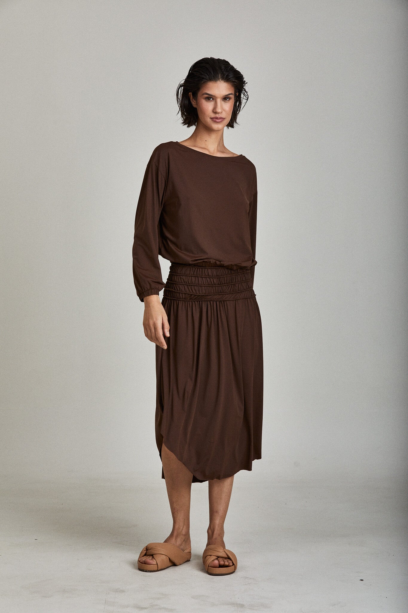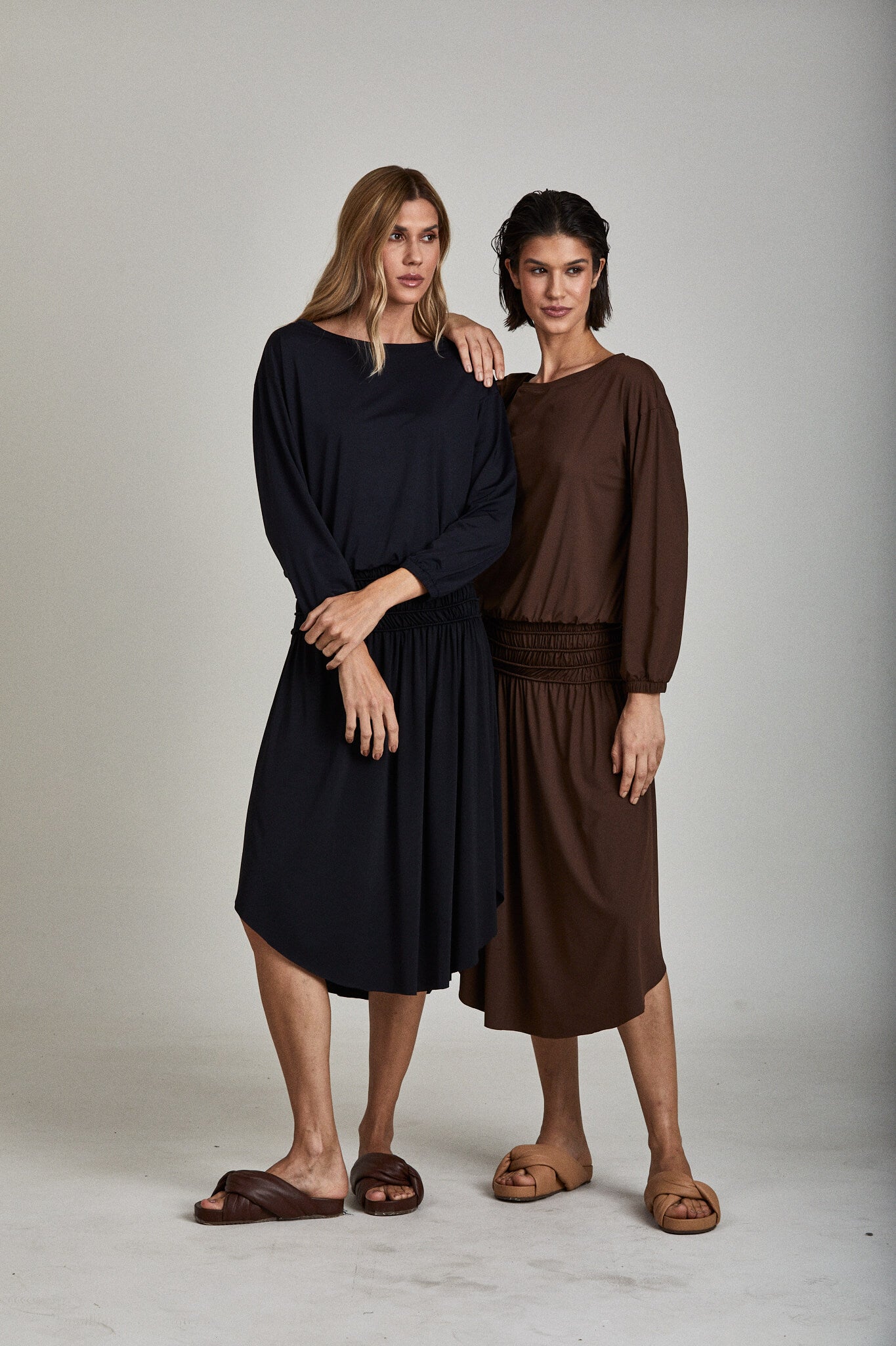Leveza e sofisticação em cada movimento: a saia midi em fluity é a escolha perfeita para quem busca conforto com elegância. Com caimento fluido e toque suave, ela traz um charme especial com o cós em nervuras, que valoriza a cintura e adiciona um detalhe delicado ao visual. Versátil e atemporal, combina com blusas ajustadas ou soltinhas, transita do casual ao chic com facilidade.